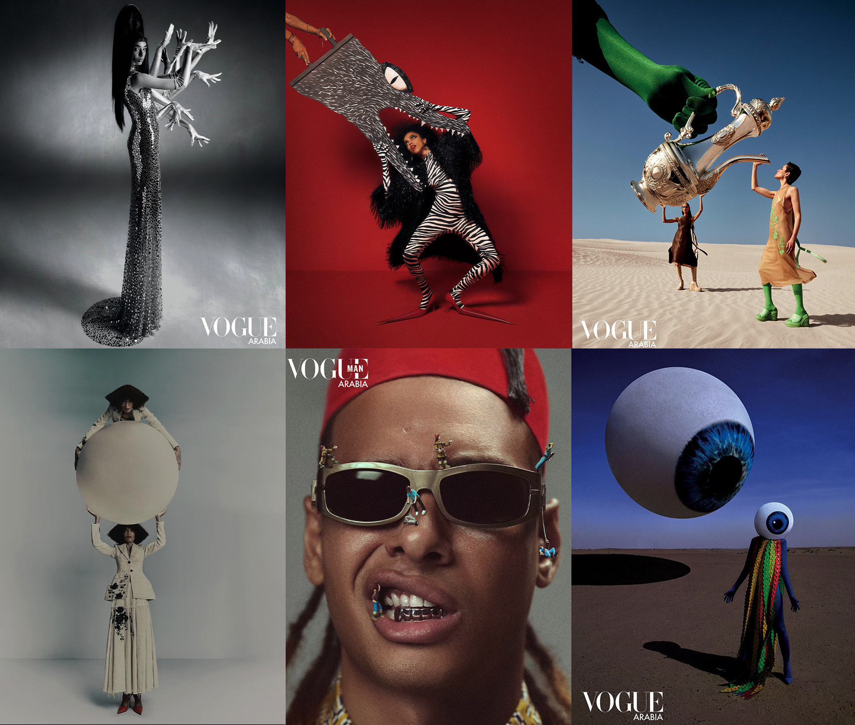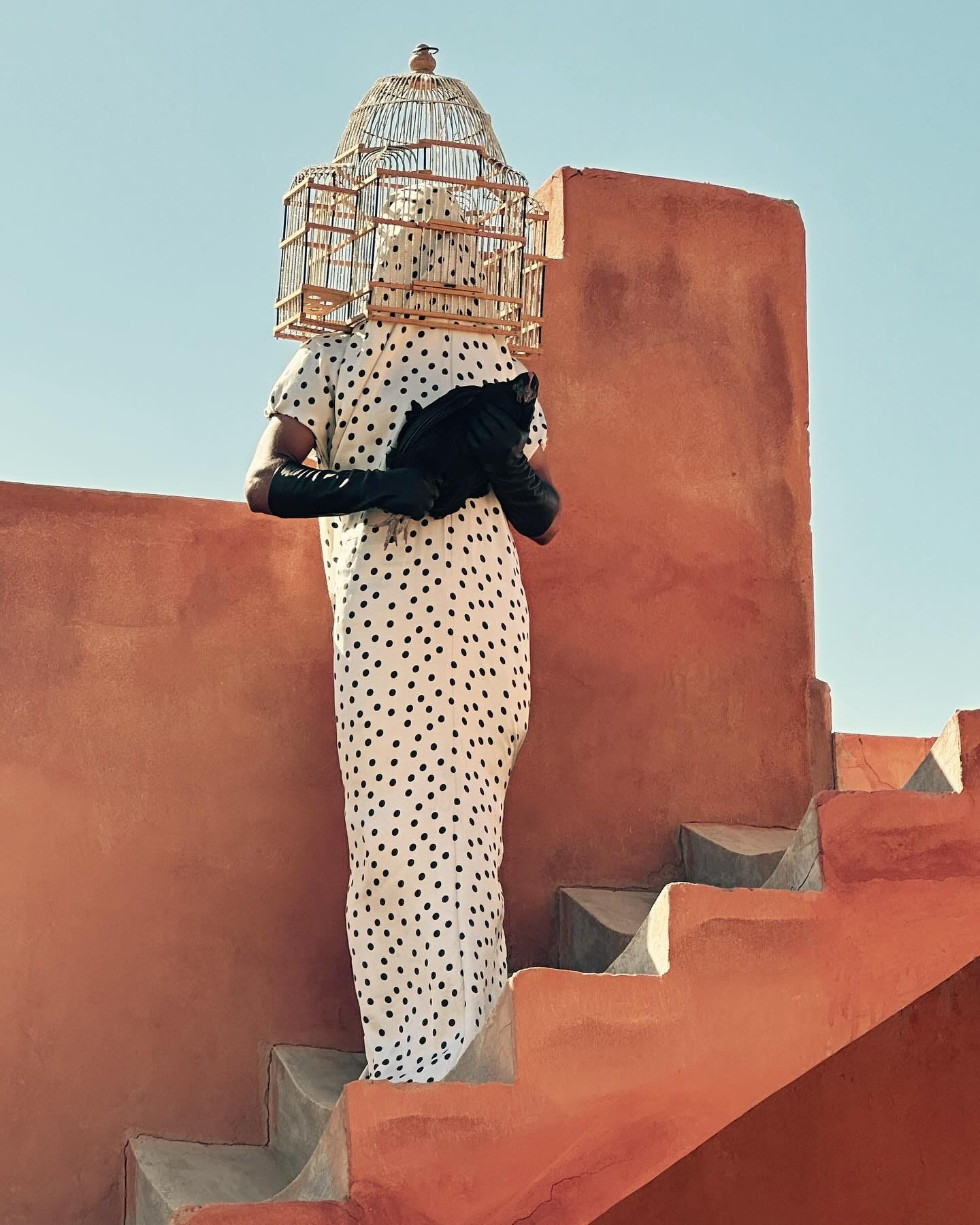A name that hardly requires an introduction and whose work you’ve most likely encountered, Ahmed Rashwan is the founder of 1602 Studio and a Fashion Creative Director. His riveting body of work brings cultural symbolism to the forefront, and he truly gives a masterclass in arresting visuals. The way each image plays with proportion, perspective, and identity, all anchored in a narrative that feels something out of a fairytale book. The stories are bold, brave, and risky, weaving in a playful use of props, leaving the viewer spellbound. His work embodies immense creativity with a hyperreal world overflowing with distortion, disproportionate objects, and self-expression. Whether it be an oversized Arabic dallah, an image scattered over 24 sheets of paper, or hair styling as the star of the show, Ahmed’s creative imprint is evident and loud.